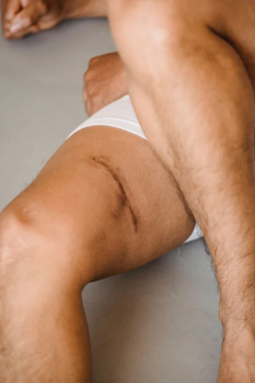 2. Trauma scars: These scars are formed due to the healing of an injured skin after a trauma or an accident. Potential sources of such scars could be chemical or heat burns, friction, scraping, or deep penetration of any sharp object. They can be minimally noticeable or cause severe thickening and tightening of the skin and underlying tissues(called contractures) that can cause skin modifications or/and restrict the normal movement of that body part if present, especially over the body joints. Traumatic scarring is often associated with pain, itching, or any other unusual sensations and can also lead to depression and anxiety because of the disfigurement.